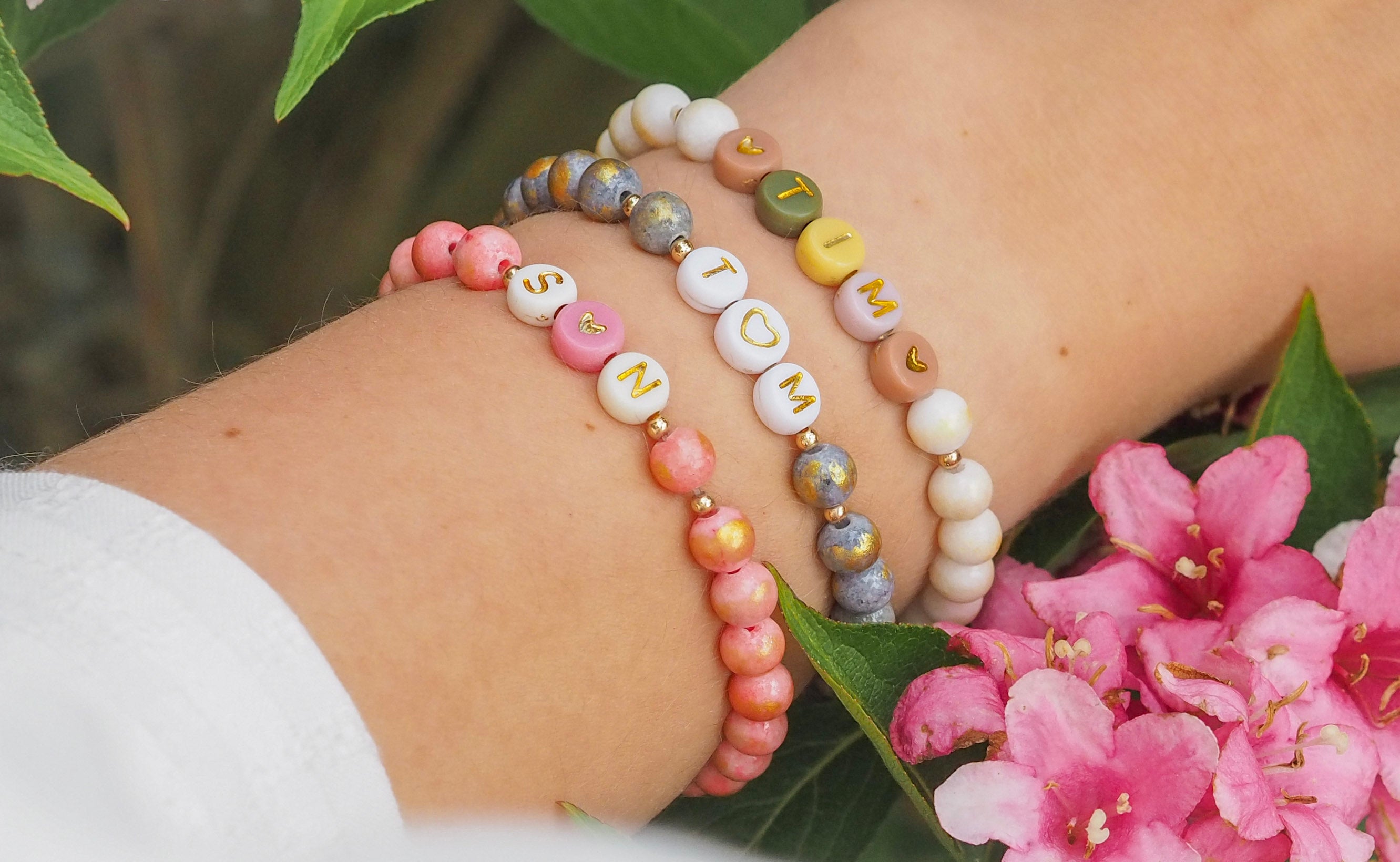 Perlenarmband mit Acrylperlen oder Glasperlen personalisiert mit Initialen