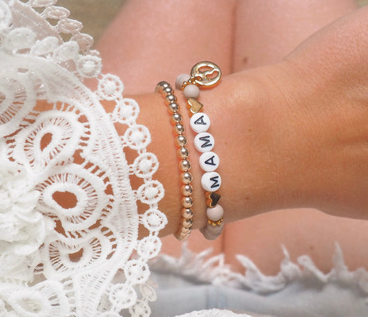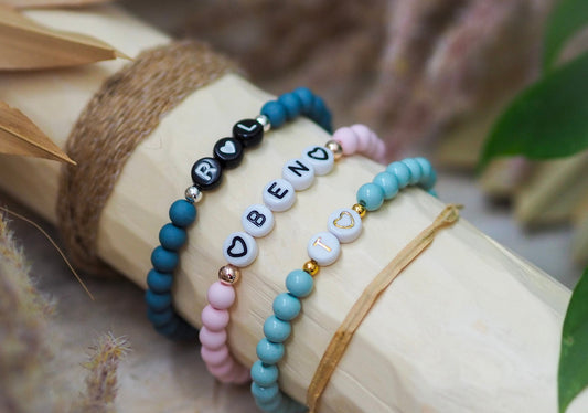Perlenarmbänder Mutter und Tochter Acrylperlen personalisiert mit Initialen