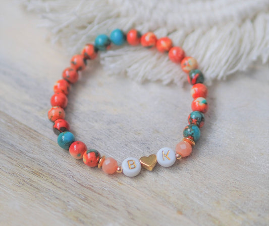 Perlenarmband Natursteinperlen personalisiert mit Initialen